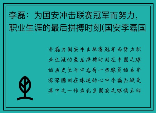 李磊:为国安冲击联赛冠军而努力,职业生涯的最后拼搏时刻(国安李磊国航)