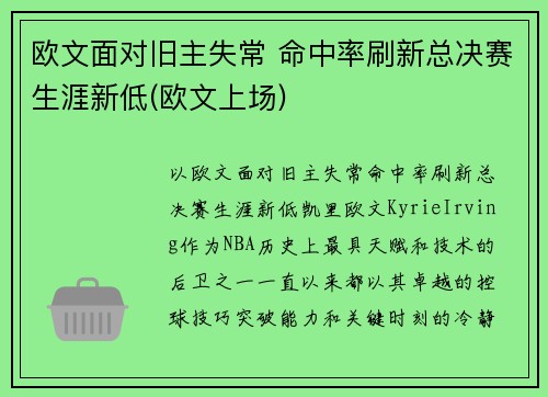 欧文面对旧主失常 命中率刷新总决赛生涯新低(欧文上场)
